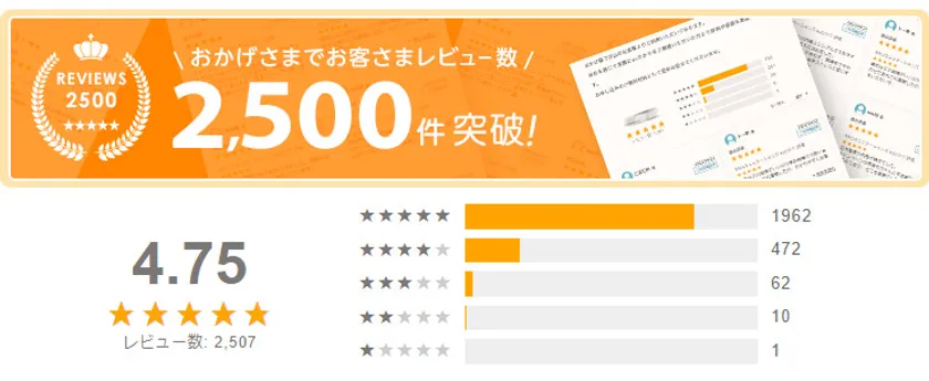 おかげさまでお客様レビュー2,500件突破★★★★★