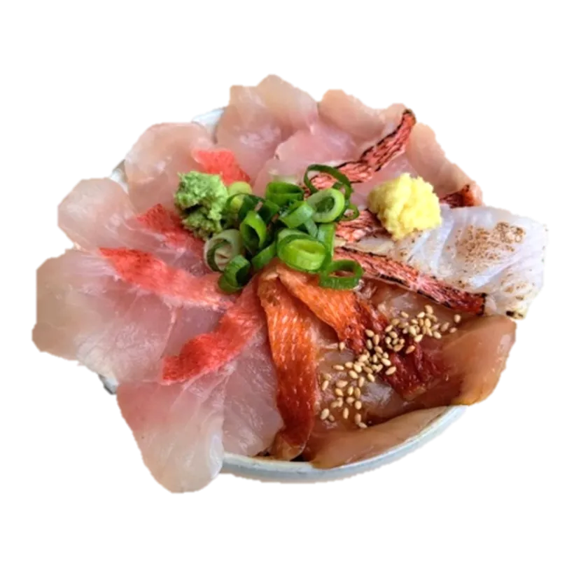 静岡県産金目鯛を生、炙り、漬けの3種類の味で堪能できる贅沢な丼ぶりです。