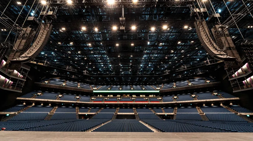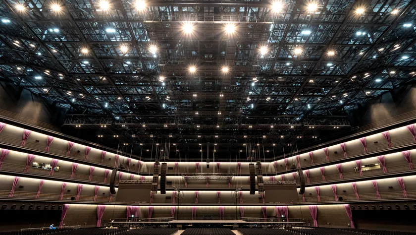 2万席を誇る客席は、全席に長時間快適に過ごせるファブリックシートを導入します。ステージ前方のアリーナに加え、三層構造となるスタンドの全席がステージ正面を向いた扇型の形状で、アーティストの表現が真正面から真っ直ぐに届き、迫力と一体感を生み出します。
