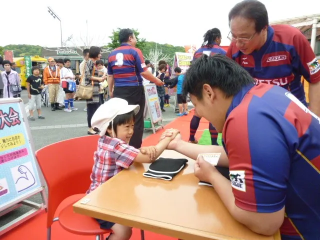 本イベントでは、JAPAN RUGBY LEAGUE ONE(ジャパンラグビーリーグワン)に所属する「花園近鉄ライナーズ」の選手たちと一緒にタックルやリフティングなどのラグビー体験ができるほか、現役選手の力強さを体感できる腕相撲大会を実施します。また、今回は、愛知県刈谷市を本拠地とする「豊田自動織機シャトルズ愛知」の選手たちも特別ゲストとして出演します。
