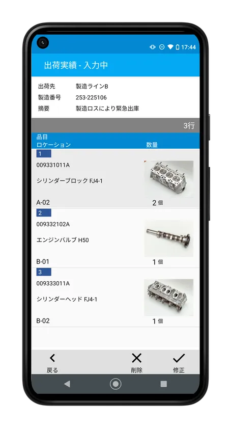 また、現場で精度の高い入出荷の登録ができるよう、スマートフォンやハンディターミナルで入力中の内容確認や修正・削除を行える機能も追加しています。