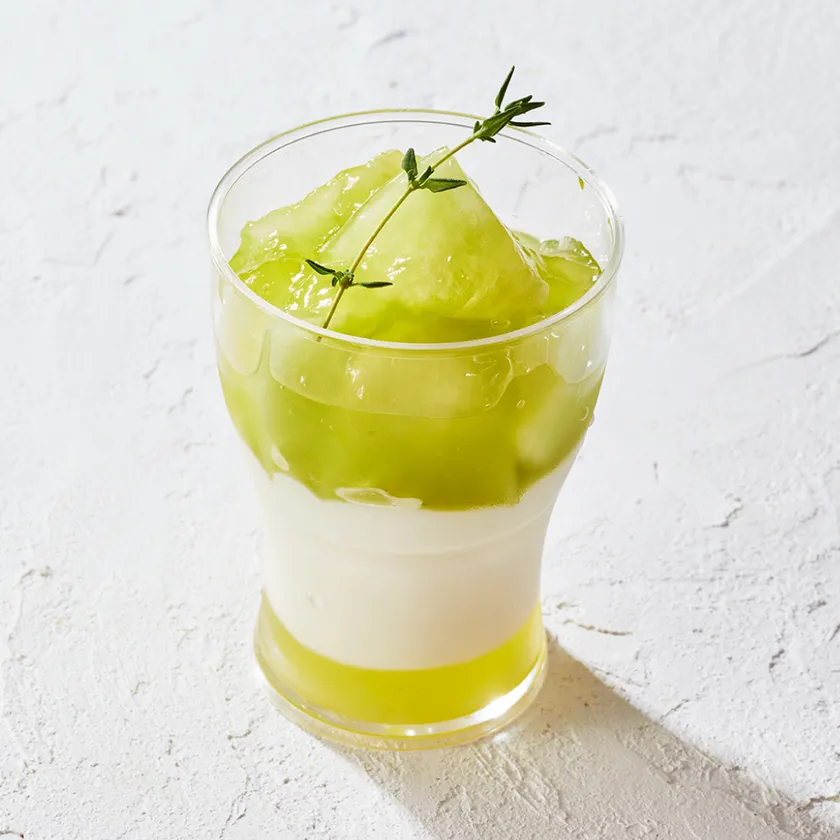 厳選した旬の国産メロンをふんだんに使用し、つるんと濃厚なパンナコッタと組み合わせて一番下にはメロンゼリーを入れました。パンナコッタが濃厚なメロンの味わいを引き立て、さっぱりしながらもコクのある余韻が広がります。
