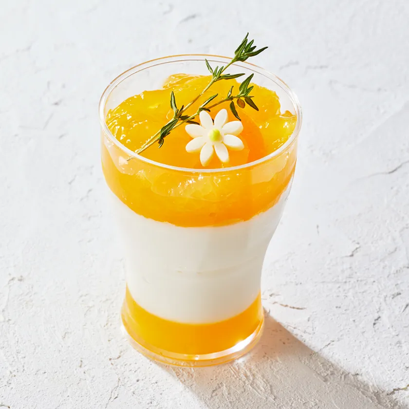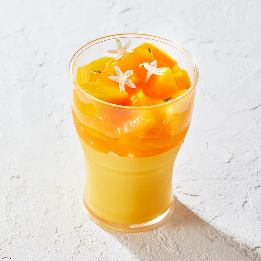 濃厚な味わいの熊本県産マンゴーを贅沢に使用し、マンゴープリンと爽やかなエルダーゼリー、マンゴーのジュレを組み合わせました。マンゴーの味わいを存分に楽しめるマンゴー尽くしの一品です。