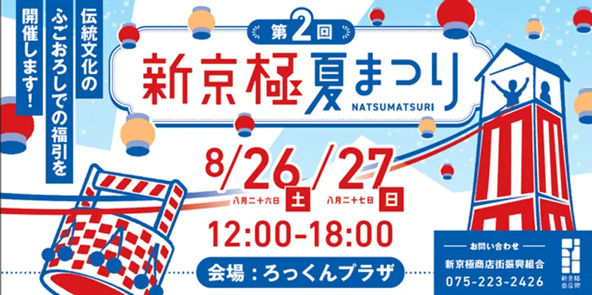 京都市中京区にある新京極商店街では8月26日(土)・27日(日)の二日間、新京極夏まつりを開催します。期間中、商店街でお買い物をすると抽選券が貰え、商店街の中央にある「ろっくんプラザ(新京極六角公園)」において豪華賞品があたる抽選会に参加できます。