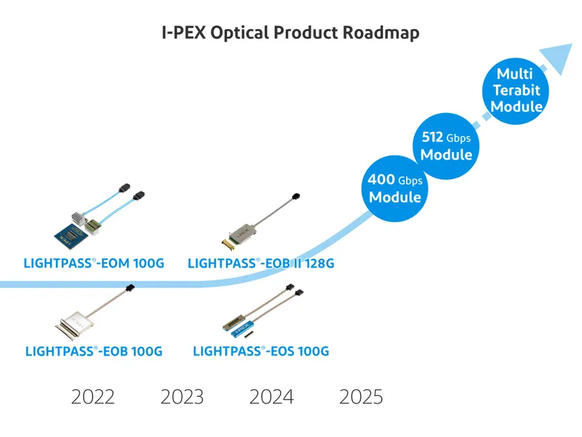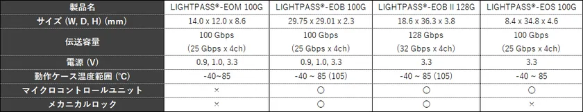 I-PEX株式会社(本社:京都府京都市、代表取締役社長執行役員:土山 隆治、東証プライム市場 コード番号:6640、以下 I-PEX)は、データセンターなどで用いられる光インターコネクション用途やIOWN※構想での利用を想定するアクティブ光モジュール「LIGHTPASS(R)シリーズ」において、NIC(ネットワーク・インターフェース・カード)等の情報機器の内部伝送や高温動作が必要な基地局等の屋外機器の内部伝送に最適な「LIGHTPASS(R)-EOB II 128G」およびロボットアームや内視鏡のような幅狭な医療機器に最適な「LIGHTPASS(R)-EOS 100G」の2つの新製品を開発しました。