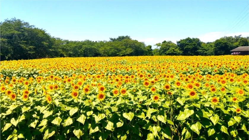成田市にある成田ゆめ牧場では、7月上旬から8月下旬にかけて期間総本数約10万本の広大なひまわり畑が太陽の光を浴びて輝きます。一面に広がる黄色いひまわりの花々は圧巻で、見渡す限りのひまわりが一斉に咲き誇る様子が訪れる人々の目を楽しませてくれます。