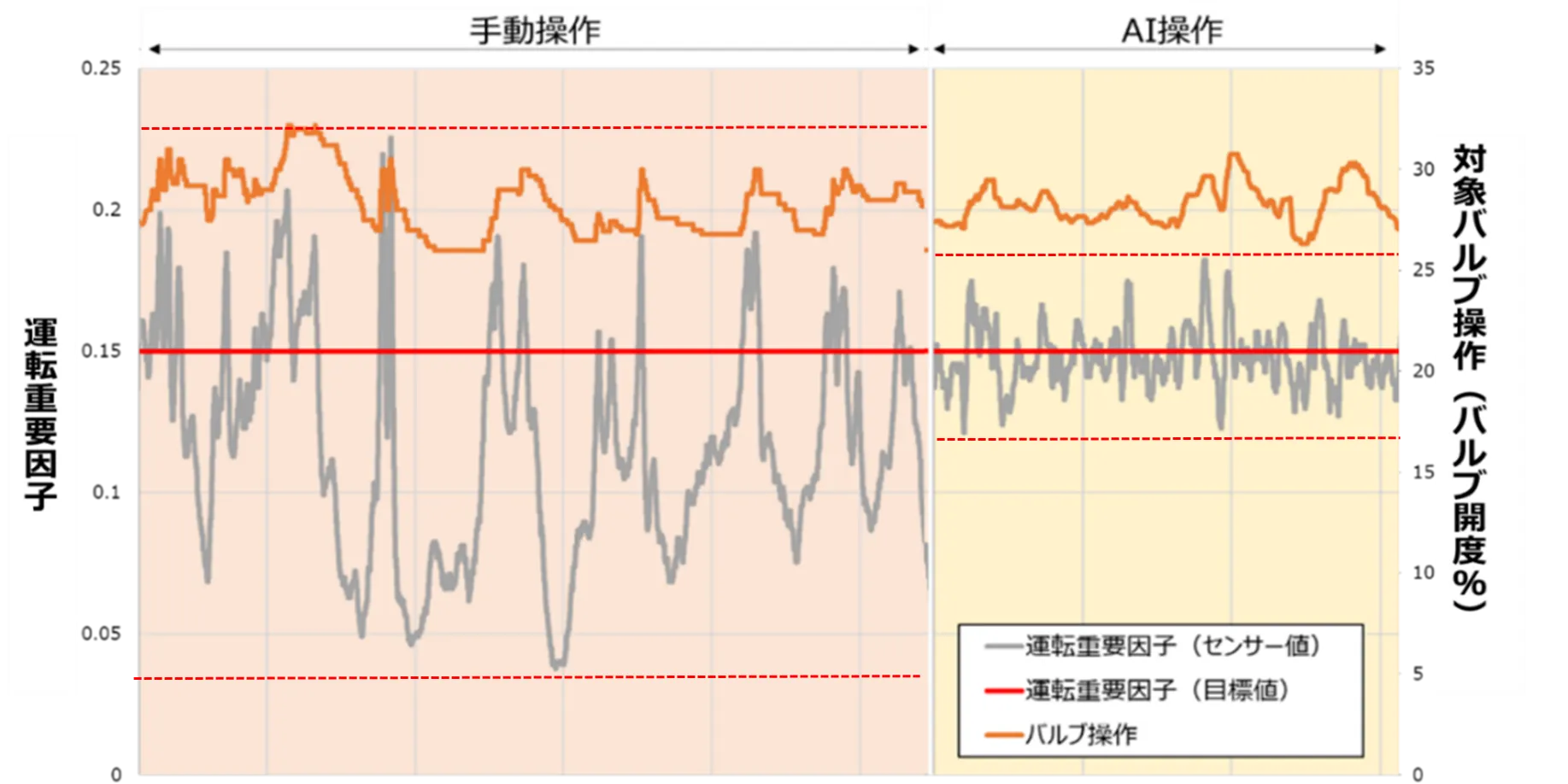 <プラント自動運転AIシステム稼働前後の運転重要因子(製品性状値)の制御性>