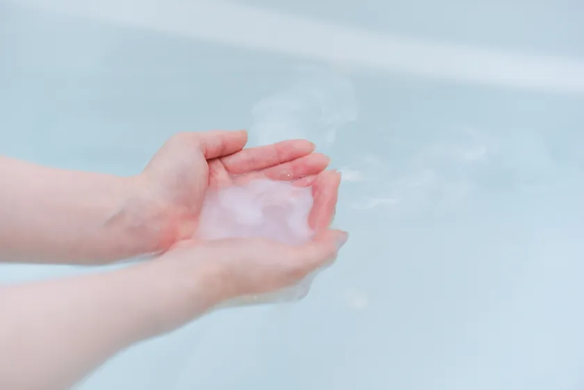 (5) バスタブに注ぐと白濁し、乳白色のお風呂で温泉気分。