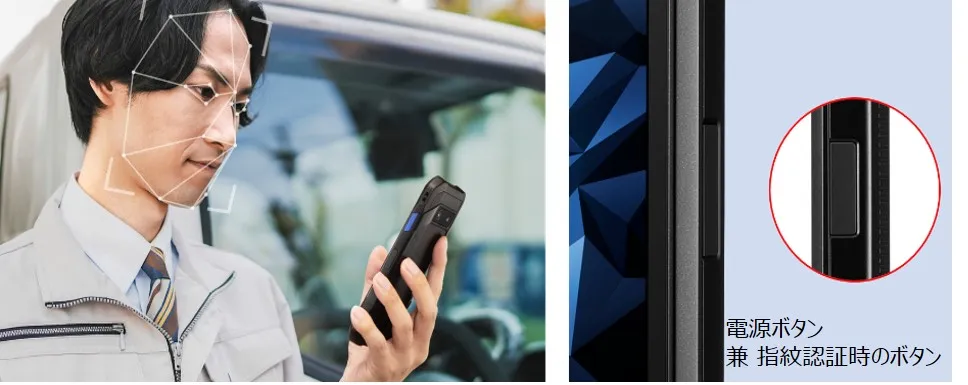 顔と指紋の2種類の生体認証に対応。マスク着用時は指紋で、グローブ着用時は顔認証で、起動や画面ロック解除ができます。