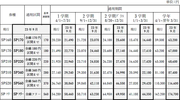 ※2023年9月1日以降に定期券を継続購入される場合は、改定後の運賃に基づいた定期券をご購入いただく必要がありますのでご注意ください。