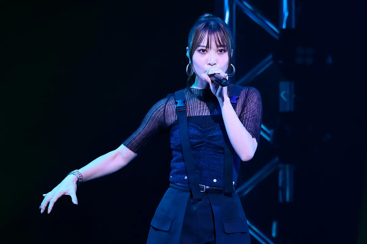 そしてもう1組の“UPCOMING ARTIST”枠、今春にランティスからソロデビューを果たした来栖りんが登場。アイドル活動を経て、現在は声優として活動している彼女。最初に披露した「I wish」は、自身の声優デビュー作にもなったTVアニメ『神無き世界のカミサマ活動』のOPテーマで、シュガーコーティングされたような甘いボーカルとシンセを中心としたキラキラとしたサウンドが聴く者を夢心地にしてくれる。続けて披露した「臆病シャイガール」も彼女のかわいらしい歌声の魅力を目いっぱい引き出したキュートな1曲で、アイドルとしての経験とポテンシャルを存分に発揮したステージングでも目を奪う。最後は9月27日リリースのミニアルバム『Happy Lucky Diary』より、リード曲「ハピ▽ラキ」を溌溂とした動きと共にパフォーマンスして、青春を感じさせる甘酸っぱくも愛らしい世界観で魅了した。