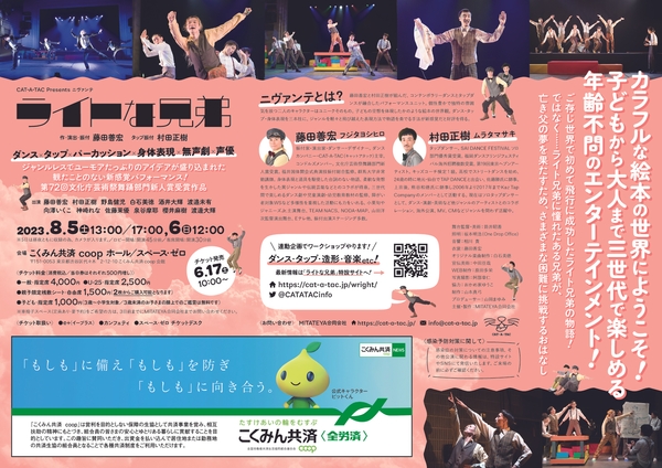 CAT-A-TAC Presents ニヴァンテ『ライトな兄弟』が2023年8月5日 (土) ~2023年8月6日 (日)にこくみん共済 coop ホール/スペース・ゼロ(東京都渋谷区)にて上演されます。チケットはカンフェティ(運営:ロングランプランニング株式会社、東京都新宿区、代表取締役:榑松 大剛)にて発売中です。