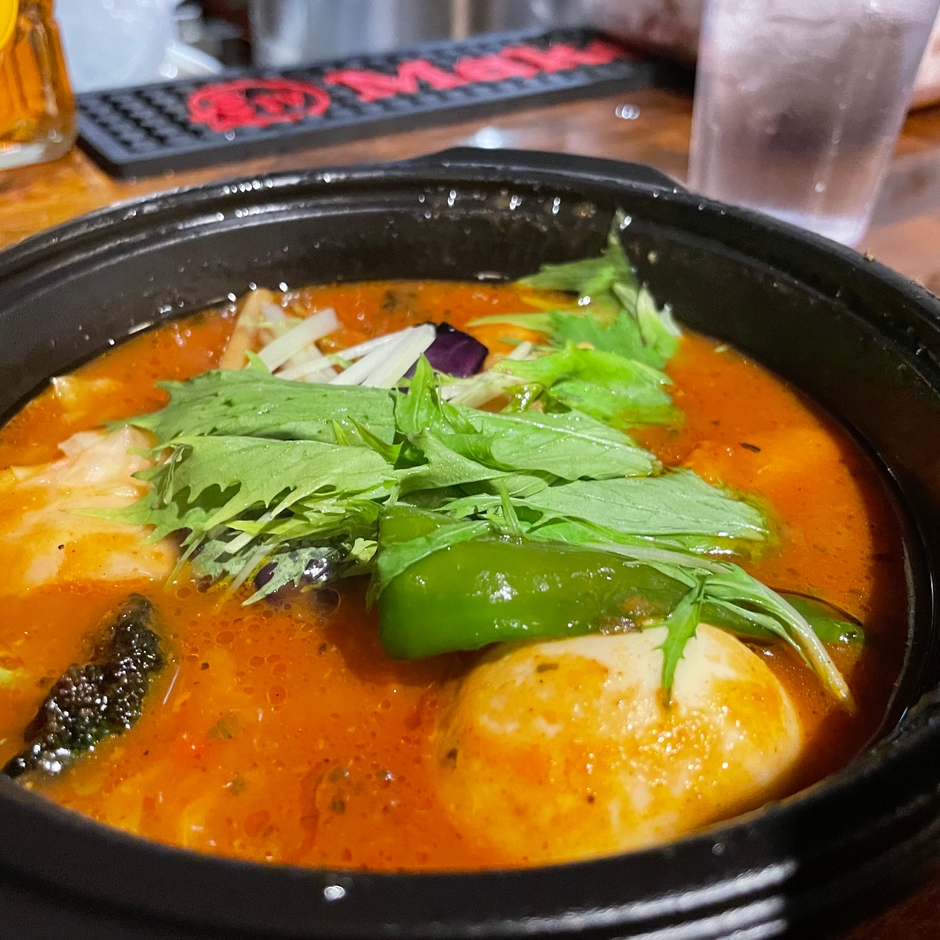 料理長はスープカレーの百名店やラーメン、スンドゥブ店で修行した実力派。彼がオリジナルの味わいを追求するために、経歴の全てを注ぎ込みました。