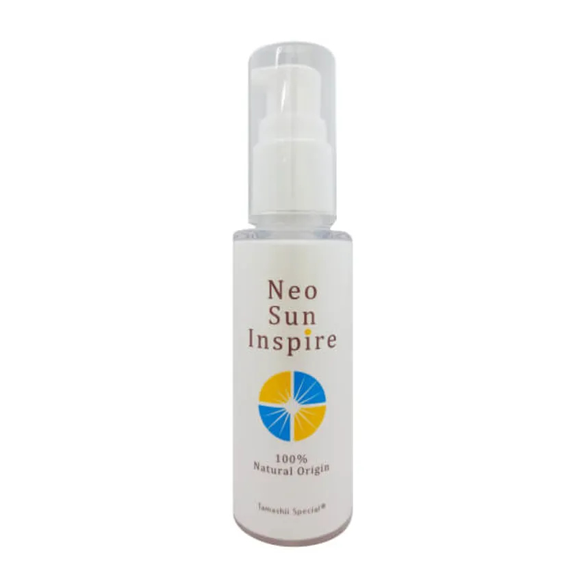 ネオサンインスパイア(無香料)は、新時代のサンケア&ブルーライト肌ケア対策の無添加化粧品。天然由来100%で造り上げた美容液グレードの乳液タイプ。UVプロテクター(日焼け止め)ではありません。