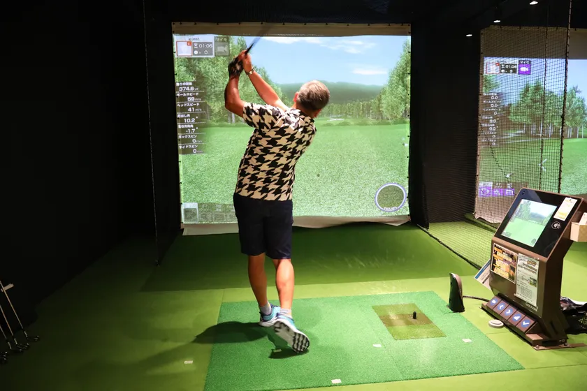個人での導入を検討する方もいると聞いて、驚きの声をあげるアメリカザリガニのお二人でしたが、インドアゴルフの本場アメリカでは、自宅にシミュレーションルームを作ることが富裕層の新たなトレンドになっており、日本でもそういったトレンドが生まれつつあるとのこと。なお、個人でゴルフシミュレーターを導入する場合、リフォームなどを含めておよそ700~1,000万円ほどのコストが必要で、その内、プロジェクターの費用はベンキューの4Kタイプのもので約70~80万円となると聞いて、自分も導入できないかと頭を悩ませるゴルフ好きの柳原さんでした。