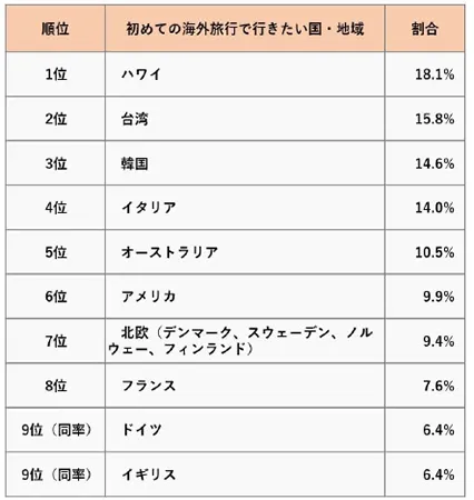 初めての海外旅行で行きたい国・地域ランキング