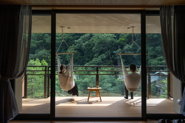 居心地のいい葉音を聴きながら里山を静かに眺める特等席で、本を読んだり、淹れたてのコーヒーを飲んだりと、何日でも居たくなる、”理想の日常℠”が過ごせる温泉リゾート。