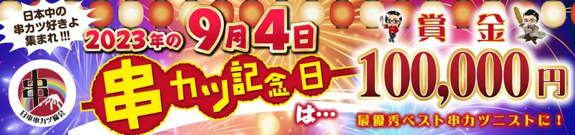 一般社団法人日本串カツ協会(大阪市城東区、代表理事:吉野 誠)は、9月4日 串カツ記念日の“串カツ記念日Week”に向けて、最優秀ベスト串カツニストを決める日本で1番アゲアゲな串カツイベントを2023年8月11日(金)~9月11月(日)まで開催します。