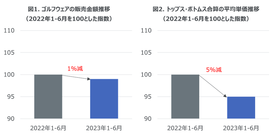 ・2023年上半期のゴルフウェア販売は金額前年比1%減。
