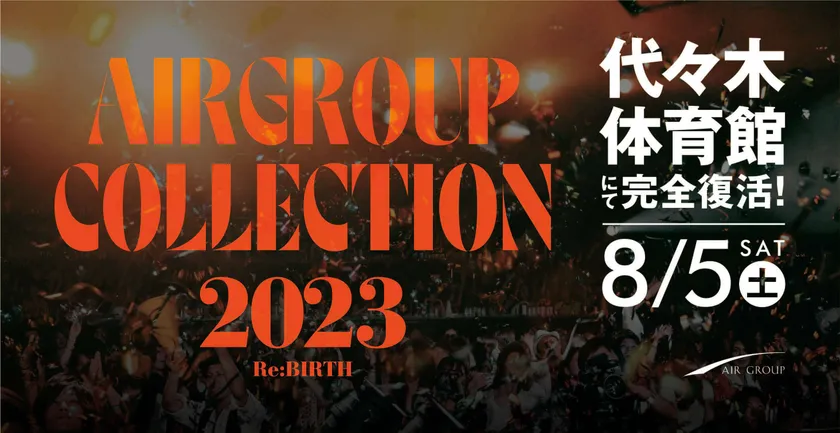 AIR GROUPは8年ぶりに復活する超特大イベント「AIR GROUP COLLECTION 2023 Re:BIRTH」の公式サイトを公開いたしました。2023年8月5日(土)に国立代々木競技場にて超拡大復活での開催となります。