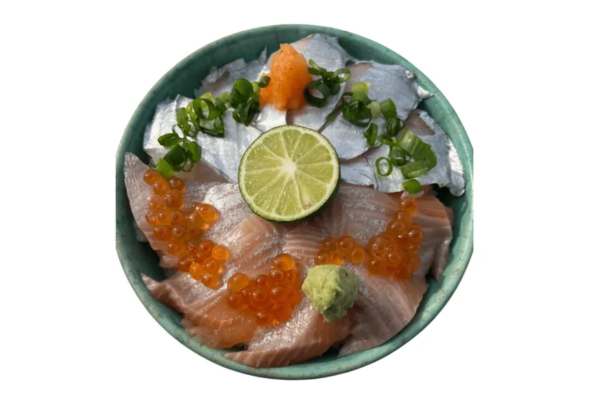 徳島県産「サツキマス」と「太刀魚」を乗せ、2色の丼に仕立てました。サツキマスの癖のない味わいと太刀魚のもっちりとした食感がたまりません!