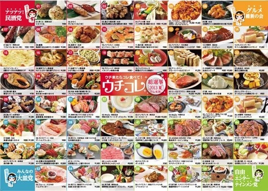 『ウチ来たらコレ食べて!ウチコレ総選挙 2013夏』がスタート! 48業態・148店舗の看板メニュー 全58品の中から、 お客の投票で人気NO.1を決定! ― 7月1日(月)~8月31日(土)まで ―