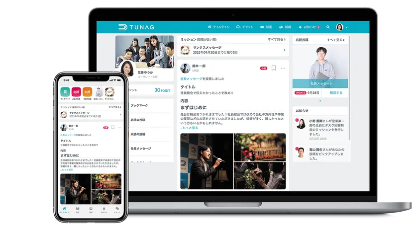 このような課題解決に向け、乱立した社内ツールを一元化し、全従業員に迅速に情報が伝わる仕組みを作るための強い組織づくりをすべく、TUNAG(ツナグ)の導入に至りました。