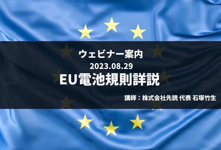株式会社先読では、2023年8月29日(火)に、新たに公布された電池規則についてのウェビナー(オンラインセミナー)を開催します。講師は、2020年12月の欧州委員会案が登場した頃より、電池規則案について和訳解説作成やセミナー・ウェビナー講演対応を重ねている当社代表の石塚です。