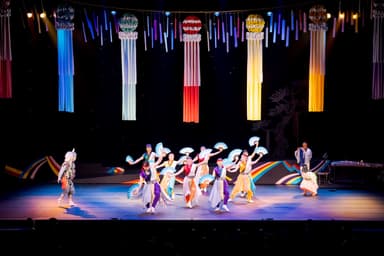 日本には、世界に誇る祭りと美しい花々があります。「祭シアター」は東北6大祭りと現代的な公演様式の融合により、世界市場でも通用する公演をめざし生み出されました。劇場を包み込む花吹雪をお見逃しなく。