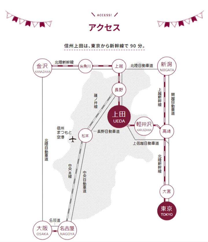 豊かな自然と戦国ロマン香る上田市は、実は国内最大級のまつたけ産地。そして、千曲川ワインバレーは、日本有数のワイン銘醸地で、新しいワイナリーも次々と誕生している注目エリアです。