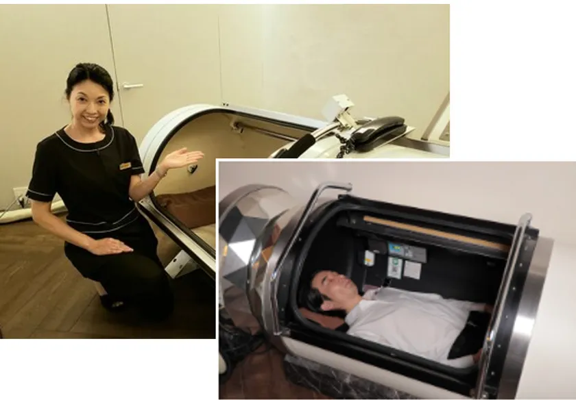 内部を高気圧に保つことで血中の酸素濃度を高め、身体のすみずみまで酸素を行き渡らせることのできる機器で、体内の代謝を促進し、ダイエットやリフレッシュに役立つとされています。