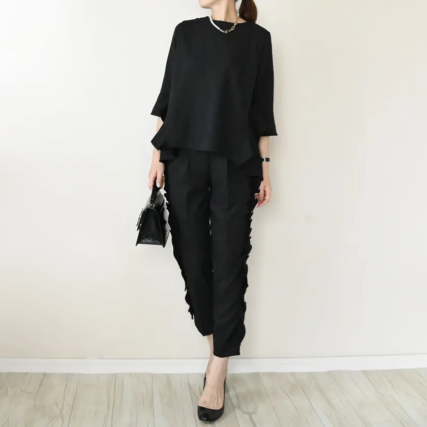 3サイドフリルテーパードパンツ(セットアップ)