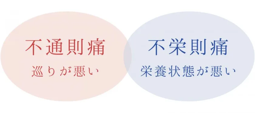 月経困難症の西洋学的な原因としては、婦人科疾患を伴う器質的なケースと、子宮の収縮が強すぎるといった機能的なケースの2つに分けられ、原因のはっきりしない機能的ケースが9割を占めていると言われます。そのため、機能的なケースの治療としては痛みを抑える鎮痛剤やピルといった限られた治療方法となります。一方の中医学では月経困難症の原因は多岐にわたります。冷え、ストレス、食生活の不摂生、疲れ、栄養不足、加齢などから起こると考え、その原因を解決することで、痛みが起きやすい体質を改善していきます。