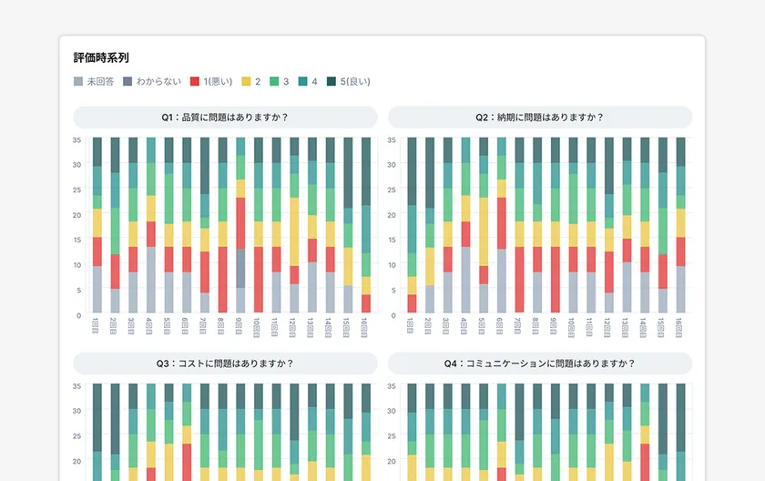 時系列データで変化を確認し、改善傾向や注視が必要な状況を把握できます。