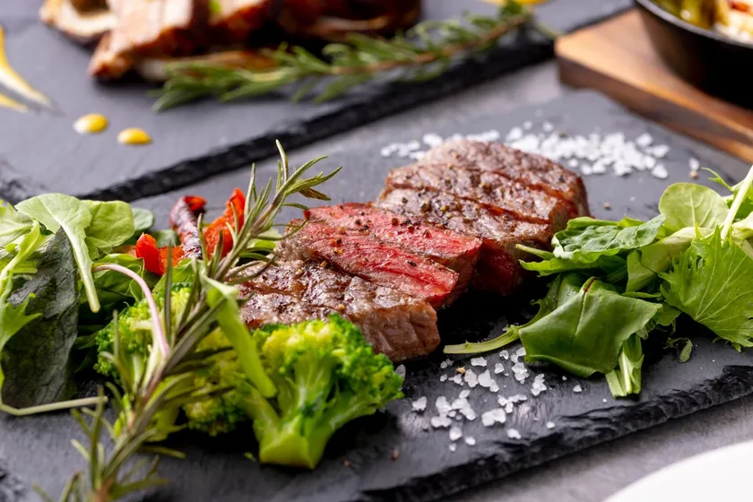 希少部位ブリスケを使用したローストビーフはコラーゲンを多く含み、
