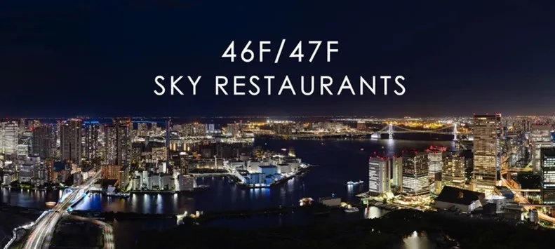 また46階の展望スペースでは、無料で地上約200mからの東京湾のナイスビューを一望でき、同フロアのレストランでは昼も夜も景色を眺めながら食事をお楽しみいただけます。
