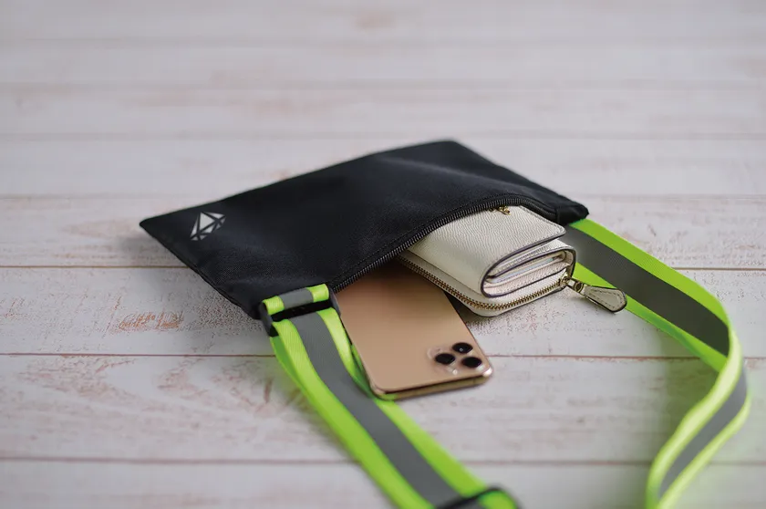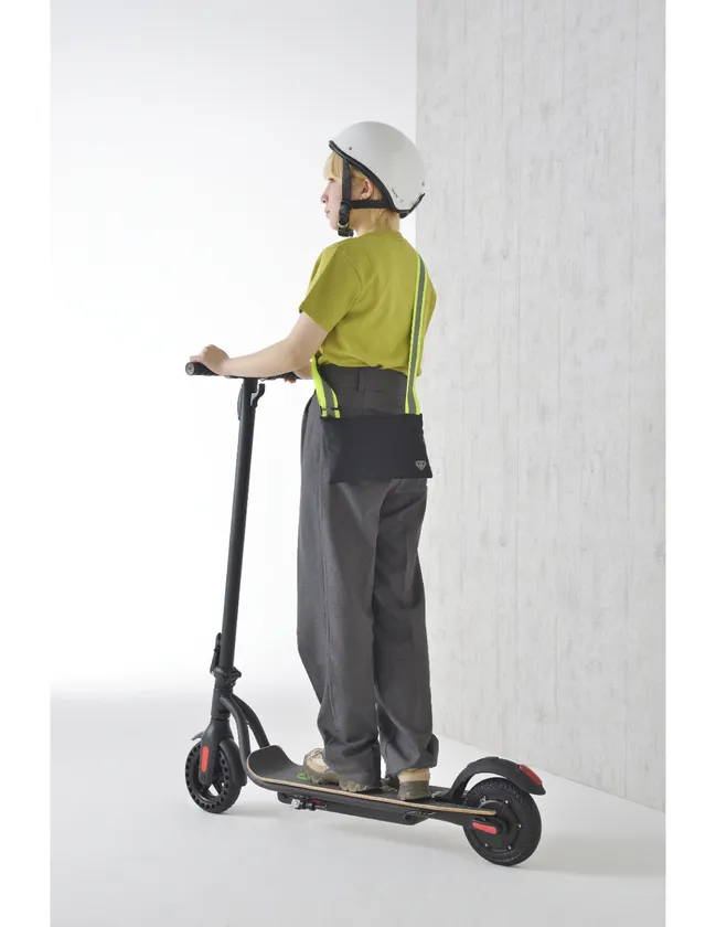 「電動キックボードは尾灯も低い位置にあり、夜間後ろから見ると全然よく見えない、もっと視認性をどうにかできないか」そんな話が交通安全啓発をしている警察関係者から寄せられていました。そこで最近は使っている人も多いサコッシュに注目。肩掛けベルトの両面にリフレクターを施し、サコッシュの機能は失わず視認性を向上させることができました。