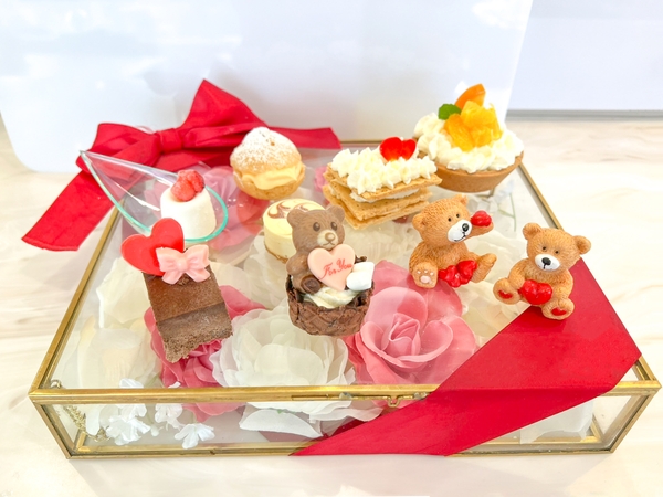 アフタヌーンティーのデザートを使っているのでバレンタイン仕様のプレートなっております。