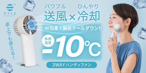 株式会社アピロス(本社:東京都港区)は、パワフルな送風とペルチェ素子の冷却プレートがついた3WAYで使えるハンディファンを2023年5月中旬より、アピロス公式オンラインショップにて発売いたします。