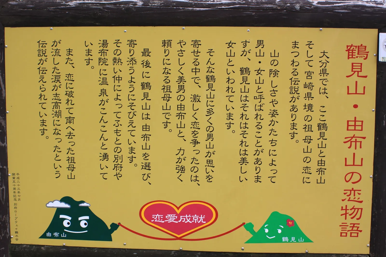 <Nightペア券に含まれるハートの絵馬> <鶴見岳・由布山の恋物語>