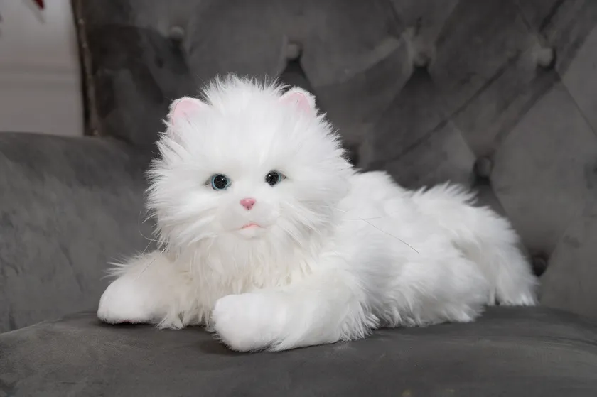 感情表現のパターンはしっぽの動き・お目目をパチパチ・鳴き声の組み合わせで全100通り以上。上質な毛並みと、ふわふわな抱き心地で、まるで本物の子ねこを抱っこしているかのように感じることができます。本物の鳴き声も多数収録していることで、よりリアルな「子ねこちゃん」を演出します。