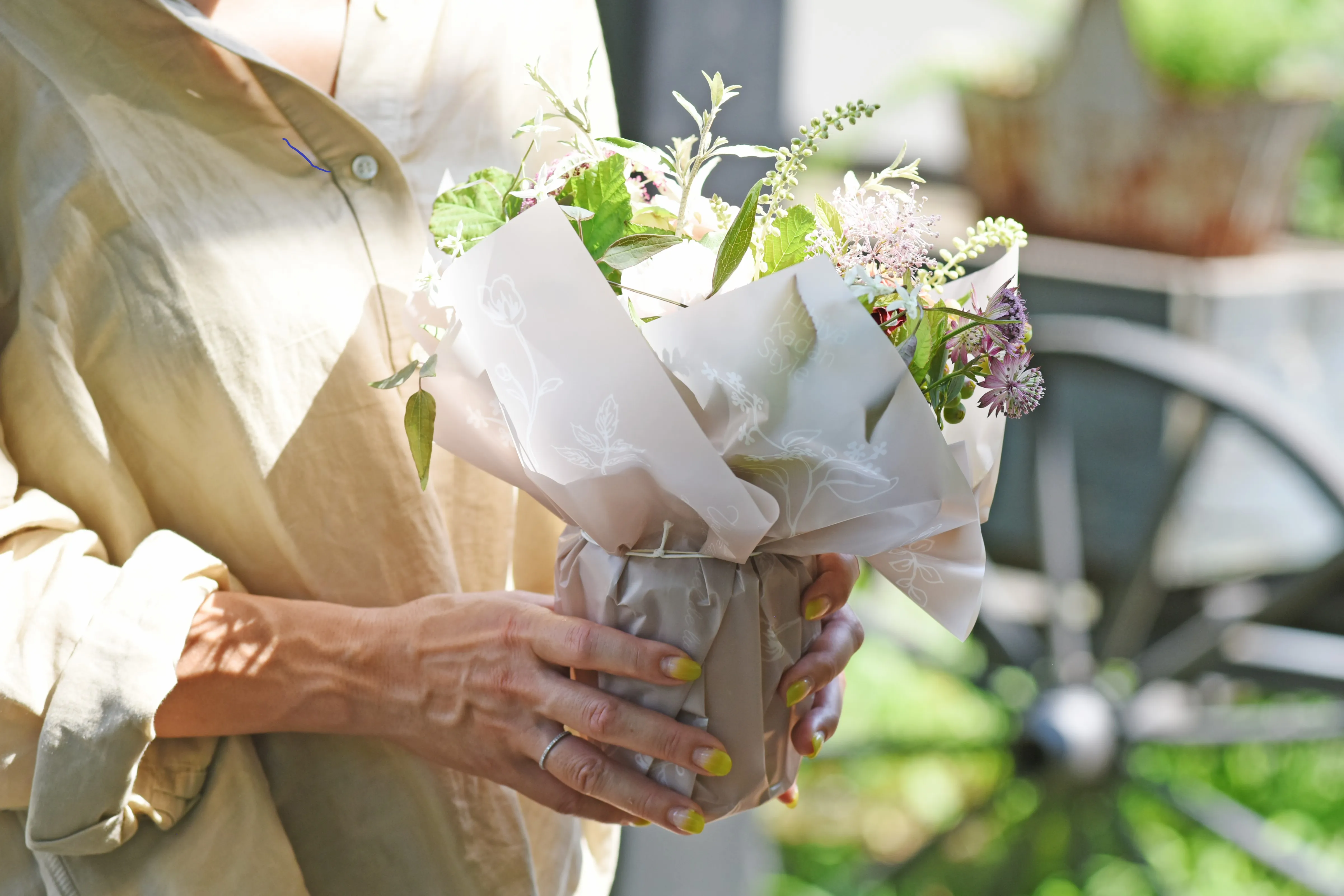 日比谷花壇が全国の店頭で販売する「シュシュフルール」は、2022年の母の日ギフトからエコ素材の資材を一部採用し、段階的にエシカルな展開を広げてきました。一般的に花束の資材にはプラスチック製品が多く使われていますが、日比谷花壇はプラスチックごみの削減の取り組みの一環として、「シュシュフルール」に使用するプラスチックカップを無漂白の紙製カップへと変更し、この度、ラッピングペーパーも環境にやさしい素材へと切り替え、全面リニューアルします。花とみどりを扱う日比谷花壇が取り組む、エシカルな取り組みの一貫として採用を決定しました。