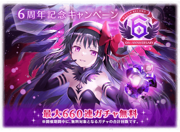 『マギアレコード 魔法少女まどか☆マギカ外伝』6周年並びに「悪魔ほむら」の登場を記念して、特別なログインボーナスを開催いたします。
