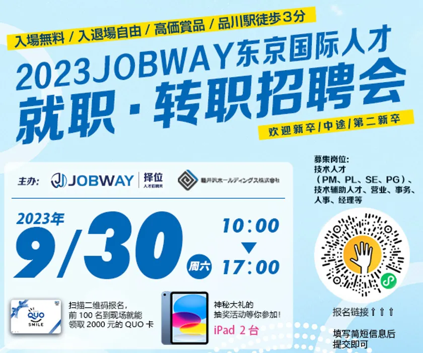 日本・中国勤務の仕事を1,000件以上ご紹介 「2023JOBWAY東京グローバル人材就職・転職フェア」 9/30(土) 東京・品川で開催