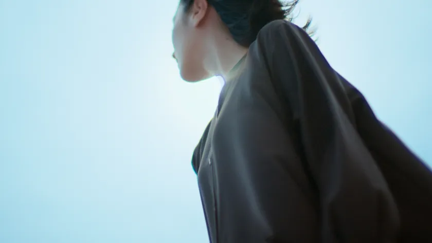 希望に満ちた世界を、瞳の先に広がる清々しい青い空で描写。