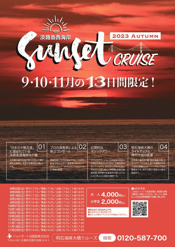 秋の淡路島西海岸サンセットクルーズチラシ