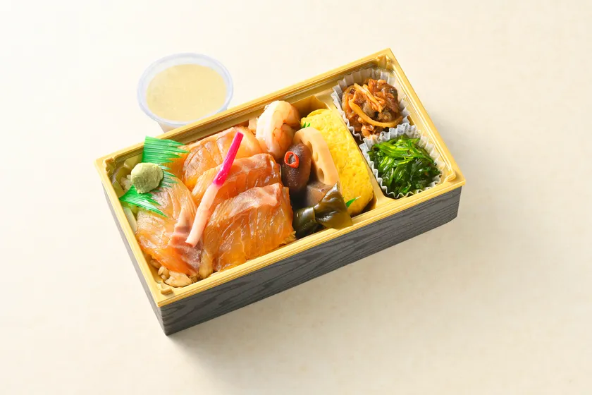 九州産の天然真鯛を鯛出汁醤油に漬け込んだ大分県の郷土料理「りゅうきゅう」を鯛めしに乗せた贅沢なお弁当。とろろをかけることで一味違う味わいが広がる。