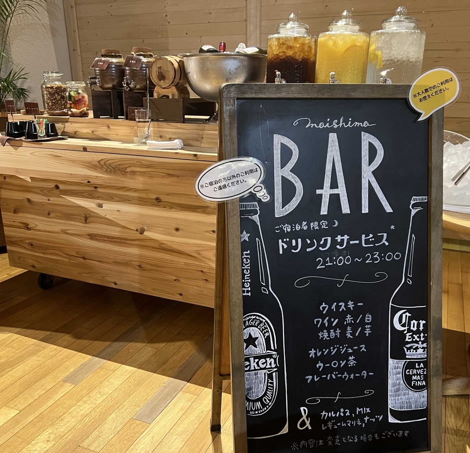 21:00から23:00までの時間、本館1階ロビーにて開かれる「ナイトBAR」。
