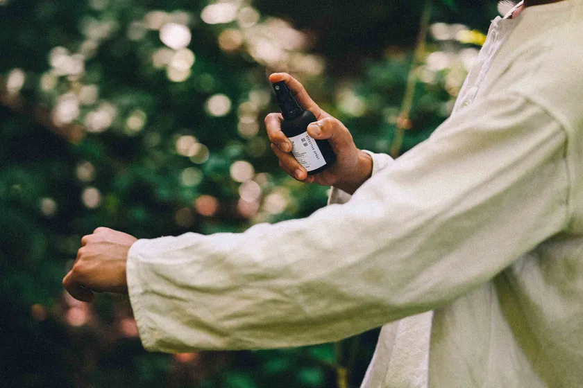 虫除け成分ピネンを含む自社蒸留の赤松の精油をベースに、アジアで古くから虫除けとして用いられていたベチバー、ミントの中でも虫除け成分メントールを特に多く含むペパーミントをブレンド。赤松のウッディなフレーバーに、イネ科の根を蒸留するベチバーの独特な甘みとペパーミントの爽快さを加えることで、純粋に香りを楽しめる仕上がりになっています。虫除けとして衣類やカーテンなどの布、または空間に吹きかけてご使用ください。