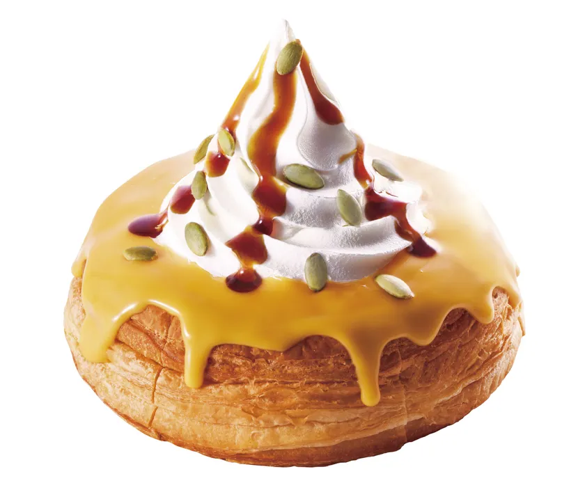 秋の味覚、かぼちゃを使用したシロノワールが初登場です!ほかほかのデニッシュの上から、かぼちゃの優しい甘みを活かしたパンプキンソースをかけ、ソフトクリームにはほろ苦いカラメルソースをまとわせました。トッピングのパンプキンシード(かぼちゃのタネ)は香ばしく、味と食感のアクセントになっています。口いっぱいに広がるかぼちゃの風味を、存分にお楽しみいただける一品です。